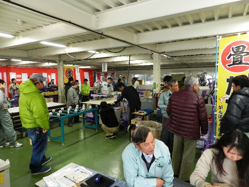 恒例の新春展示会であり、140名以上の畳店で賑わい、畳大型機械契約や特価工具販売が相継ぎました。