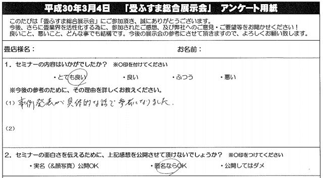 昼食後の「繁盛店に学ぶ畳店経営セミナー」は、